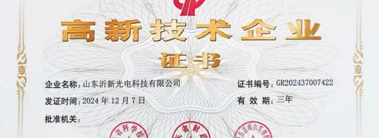 최근, 전국 첨단기술기업 인정관리업무 지도소조 판공실은 산둥성 2024년 인정보고의 첨단기술기업 등록명단 공고를 발표하여 적염유리 산둥생산기지인 산둥 이신광전과학기술유한공사가 정밀전자유리 분야에서 탁월한 생산기술,